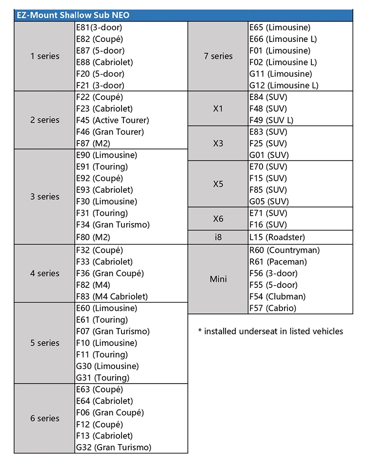 | Model | EZ-Mount Shallow Sub NEO |